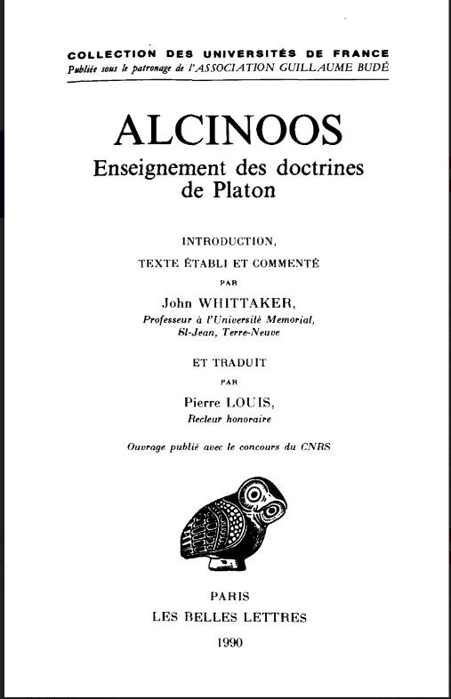 Enseignement des doctrines de Platon. Introduction, texte établi et commenté par John Whittaker, et traduit par Louis Pierre