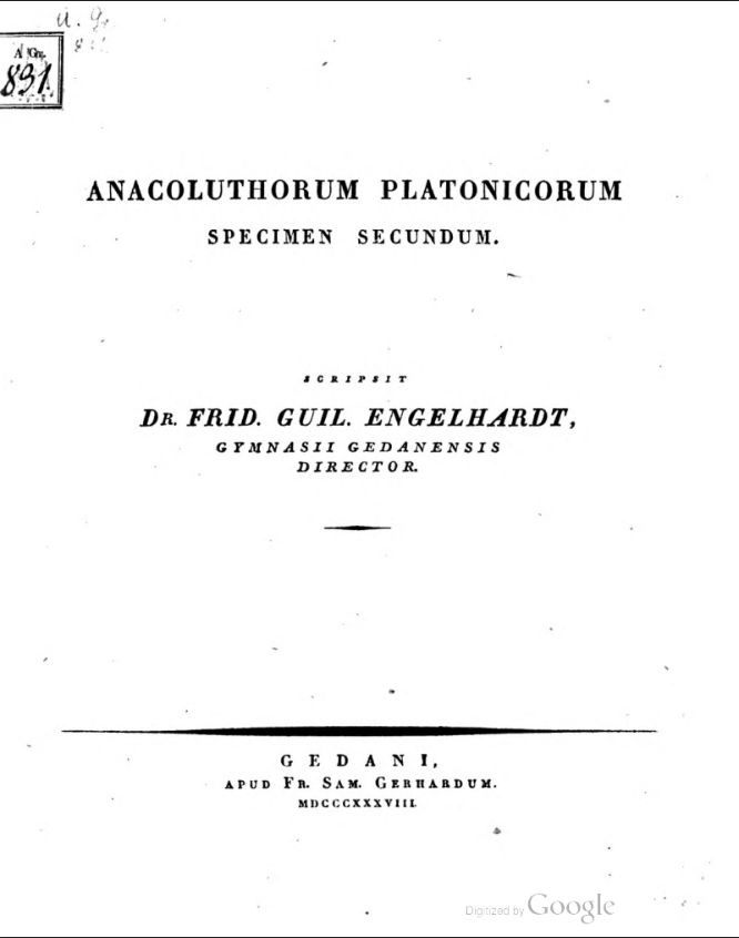 Anacoluthorum Platonicorum specimen secundum