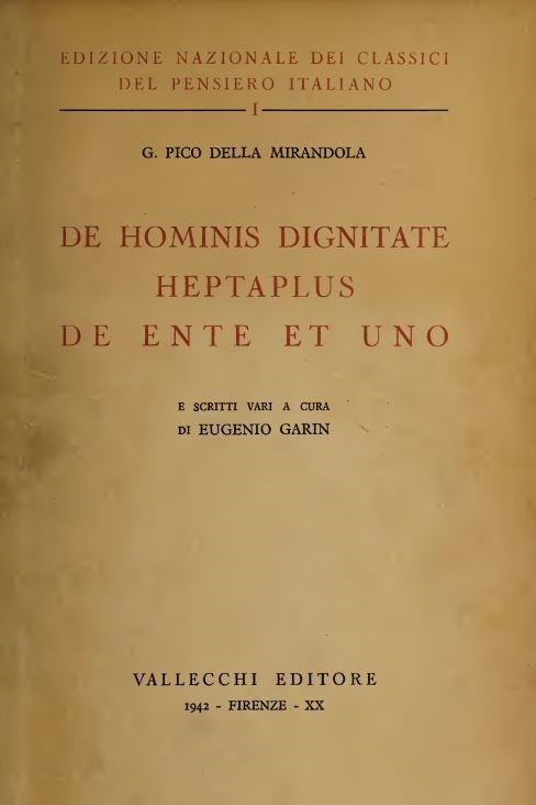 De hominis dignitate, Heptaplus, De ente et uno e scritti vari