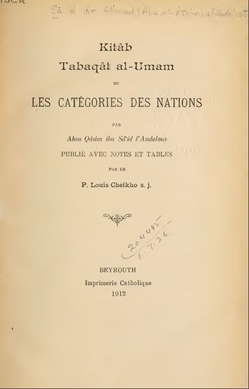 Kitāb Ṭabaqāt al-umam (Les catégories des nations)