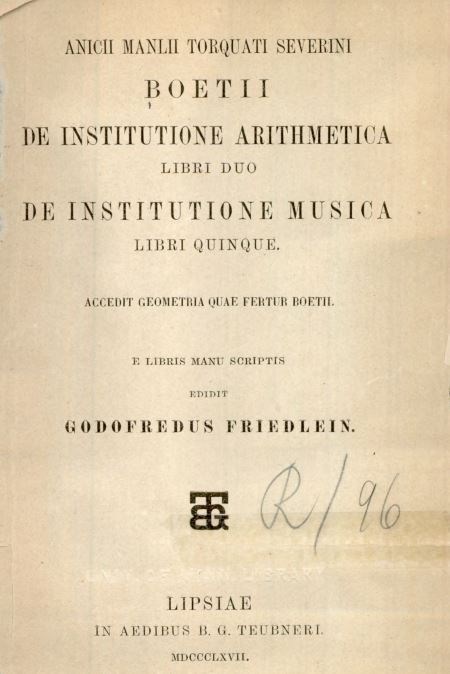 De Institutione Arithmetica, libri duo; de Institutione Musica, libri quinque; accedit geometria quae fertur Boetii; e libris manu scriptis edidit Godofredus Friedlein
