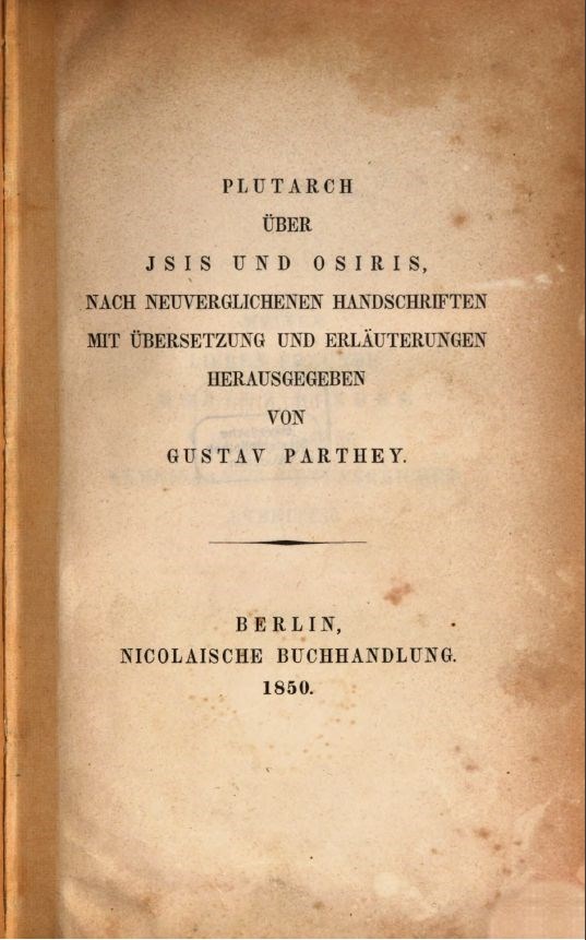 Über Isis und Osiris. Nach neuverglichenen Handschriften mit Übersetzung und Erläuterungen hrsg. von Gustav Parthey