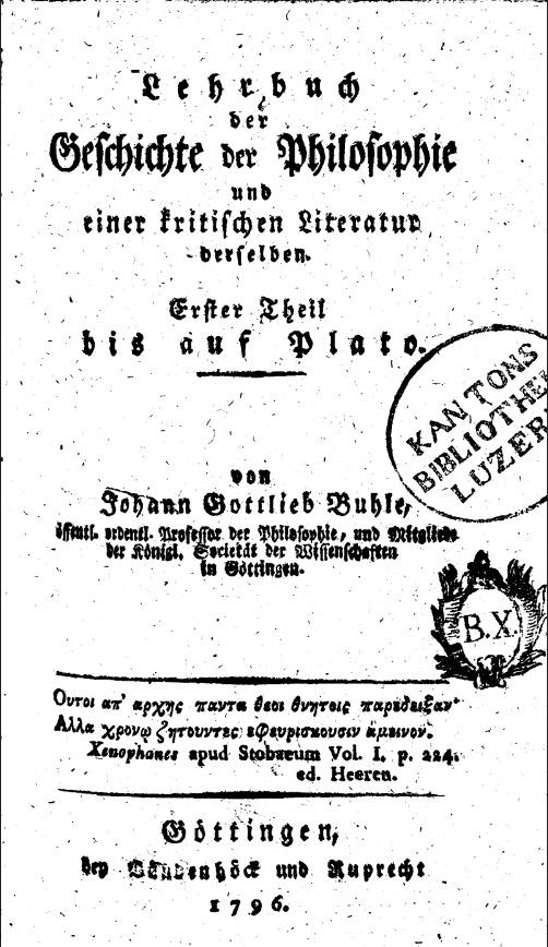 Lehrbuch der Geschichte der Philosophie und einer kritischen Literatur derselben bis auf Plato