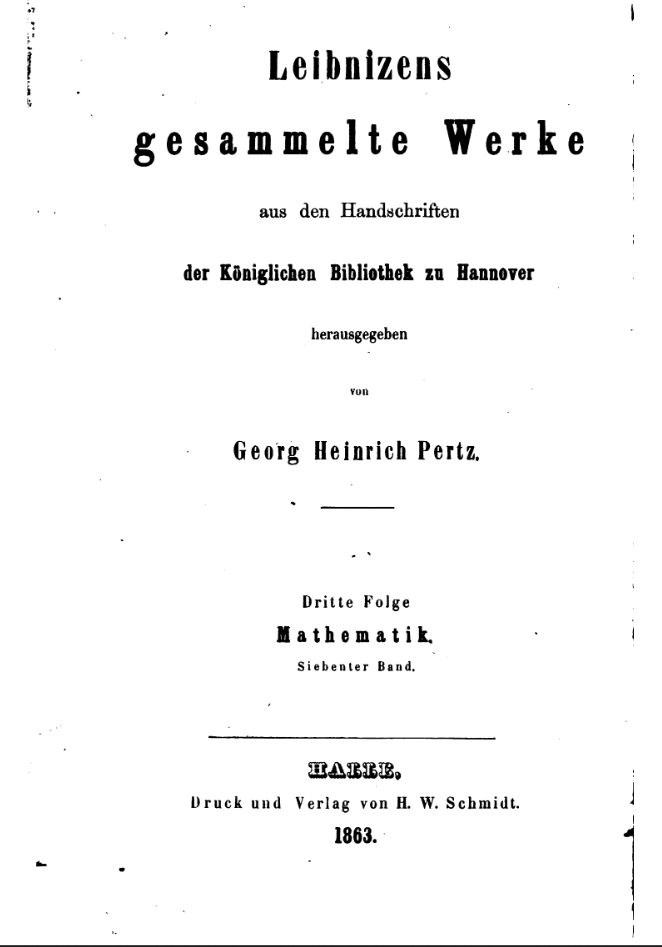 Leibnizens gesammelte Werke aus den Handschriften der Königlichen Bibliothek zu Hannover, Bd. 7: Leibnizens Mathematische Schriften