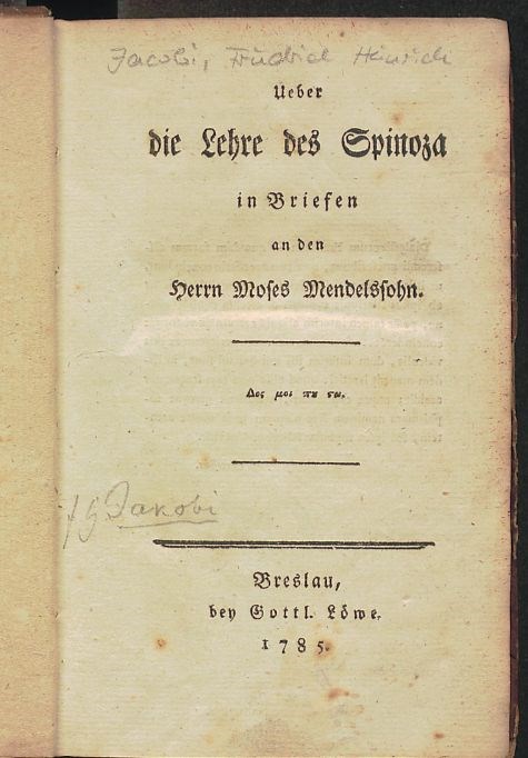 Ueber die Lehre des Spinoza in Briefen an den Herrn Moses Mendelssohn