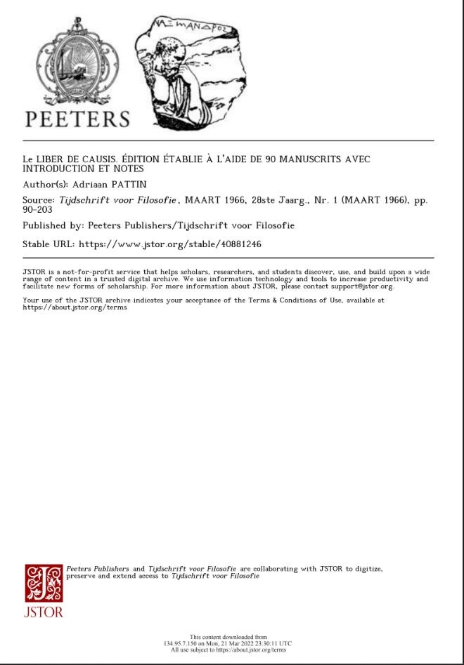 Le Liber de causis. Édition établie à l’aide de 90 manuscrits avec introduction et notes