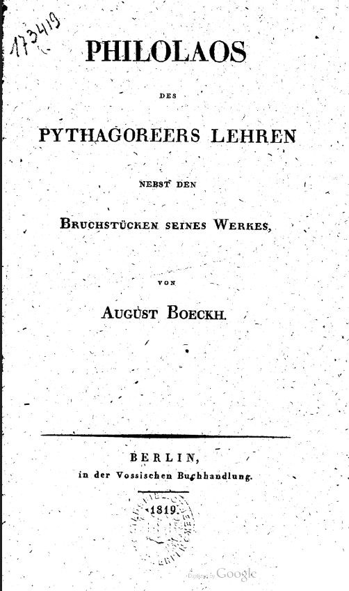 Philolaos des Pythagoreers Lehren nebst den Bruchstücken seines Werkes
