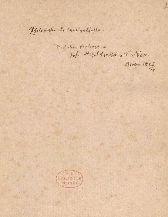 Philosophie der Weltgeschichte, Berlin WS 1826/1827 (Vorlesungsnachschrift von Friedrich Stieve): Ms. germ. qu. 1320