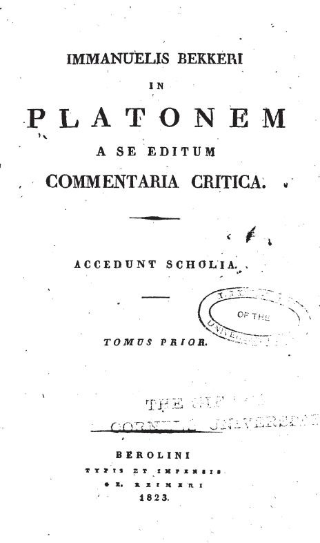 In Platone a se editum commentaria critica