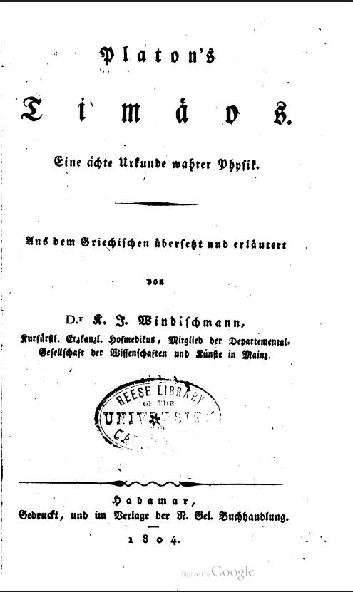 Platon’s Timäos: Eine ächte Urkunde wahrer Physik. Aus dem Griechischen übersetzt und erläutert.