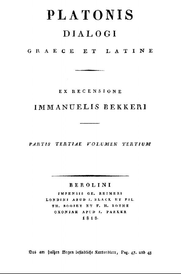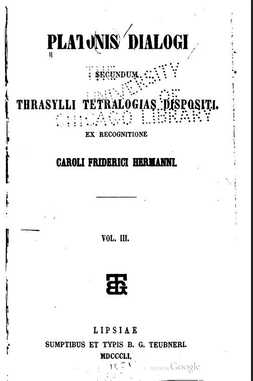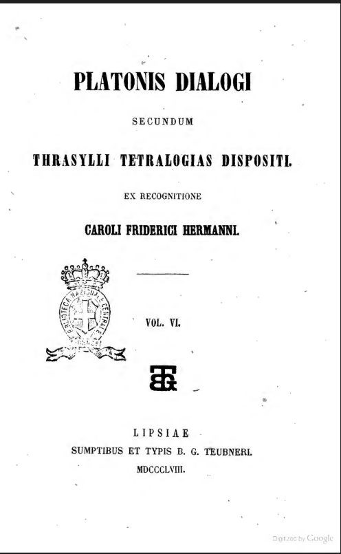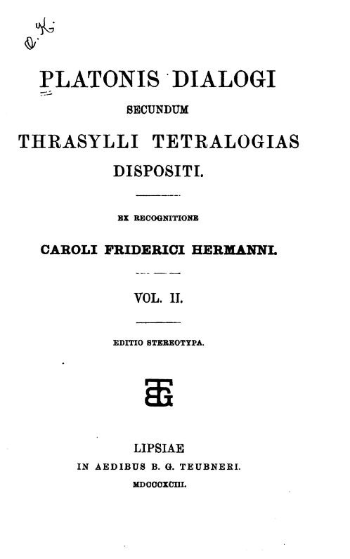 Platonis dialogi secundum Thrasylli tetralogias dispositi, ex recogn. Caroli Friderici Hermanni