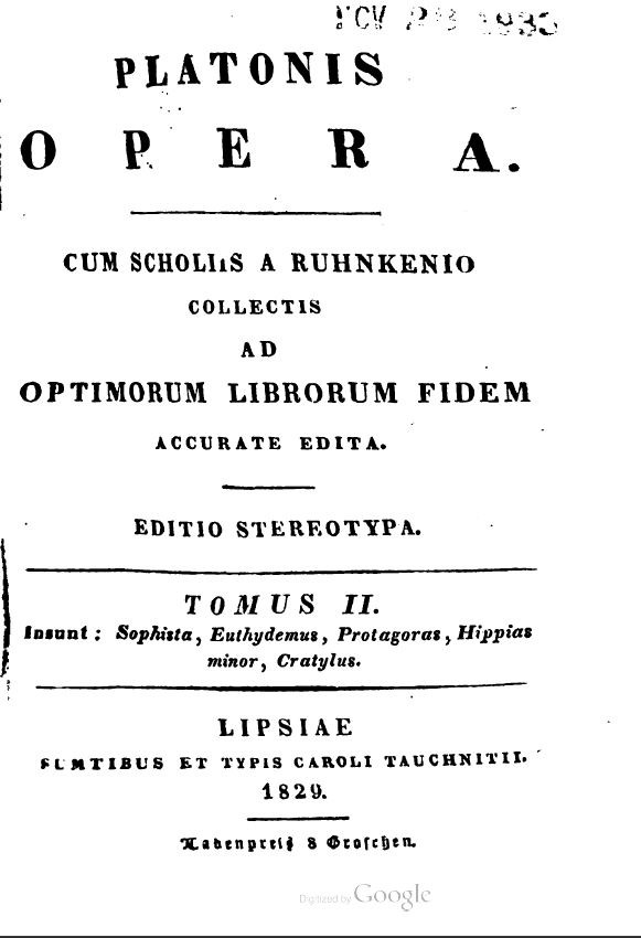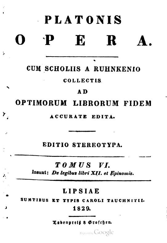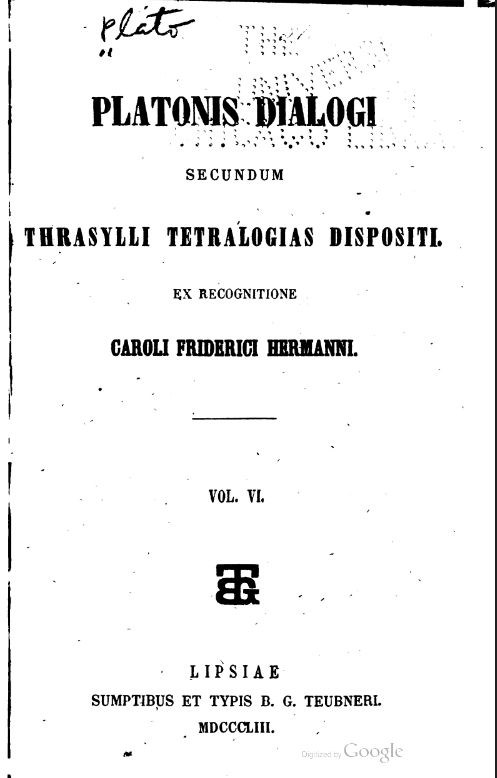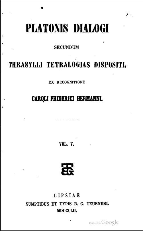 Platonis dialogi secundum Thrasylli tetralogias dispositi, ex recogn. Caroli Friderici Hermanni