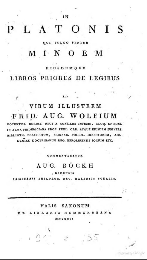 In Platonis qui vulgo fertur Minoem ejusque libros priores de legibus