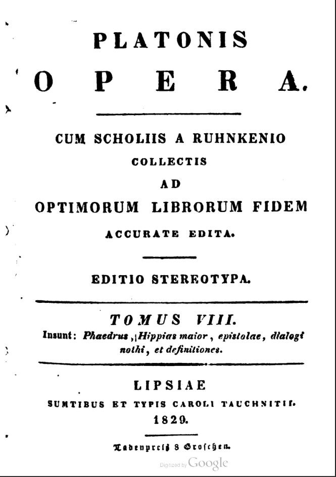 Platonis opera: cum scholiis a Rhunkenio collectis ad septimorum librorum fidem accurate edita