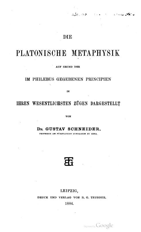 Die platonische Metaphysik, auf Grund der im Philebus gegebenen Principien in ihren wesentlichsten Zügen dargestellt