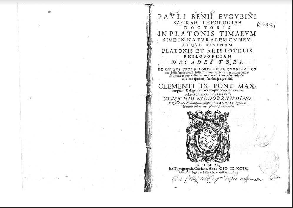In Platonis Timaeum sive in naturalem omnem atque divinam Platonis et Aristotelis philosophiam Decades tres