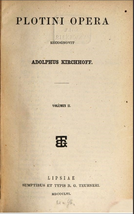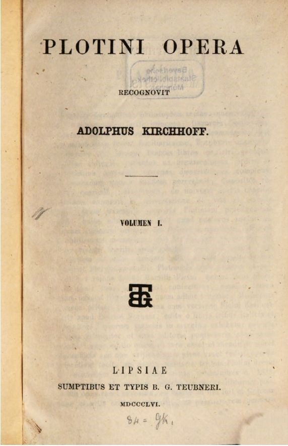 Plotini Opera recognovit Adolphus Kirchhoff, vol. 1