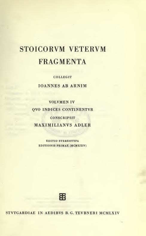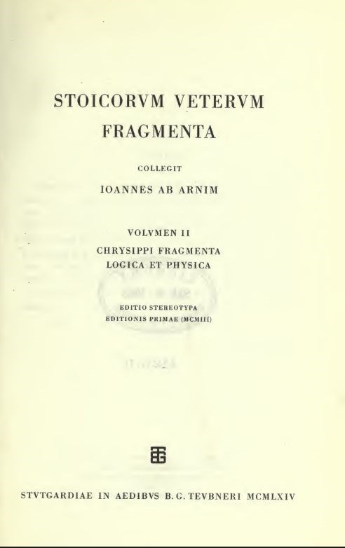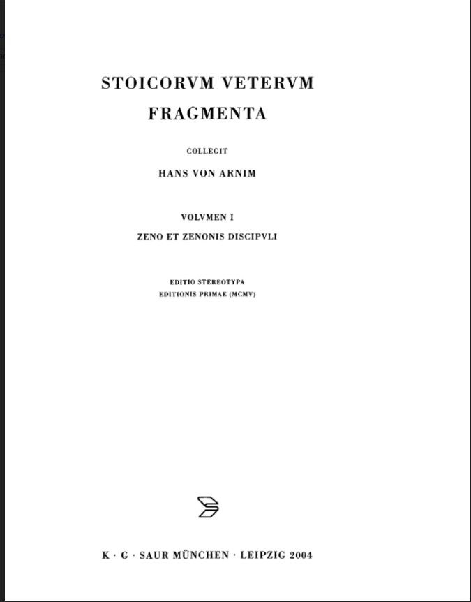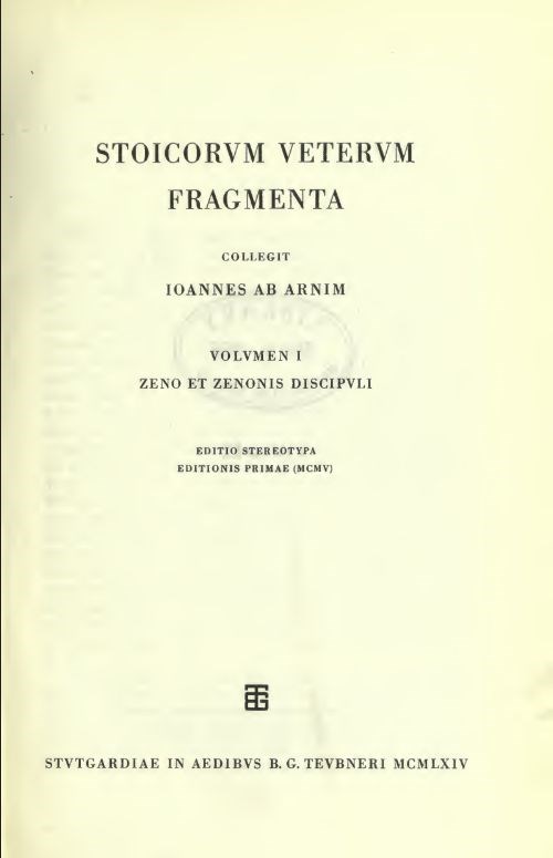 Stoicorum Veterum Fragmenta, Vol 1: Zeno et Zenonis discipuli