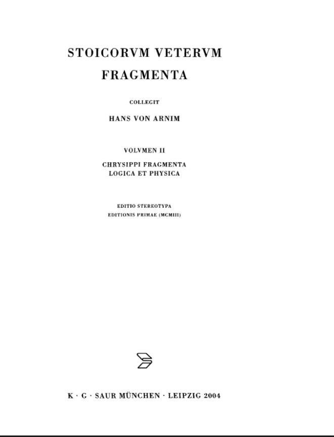 Stoicorum Veterum Fragmenta. Vol. 2: Chrysippi fragmenta logica et physica