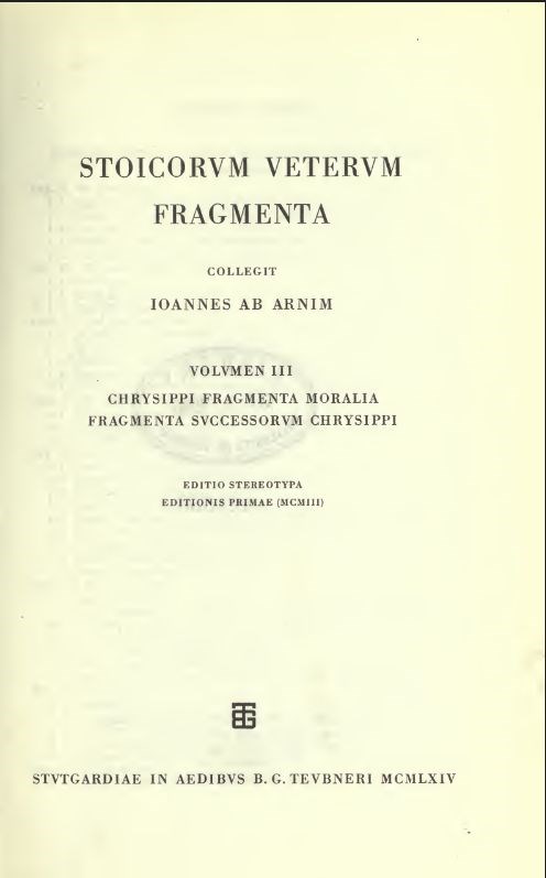 Stoicorum Veterum Fragmenta, Vol. 3: Chrysippi fragmenta moralia. Fragmenta successorum Chrysippi