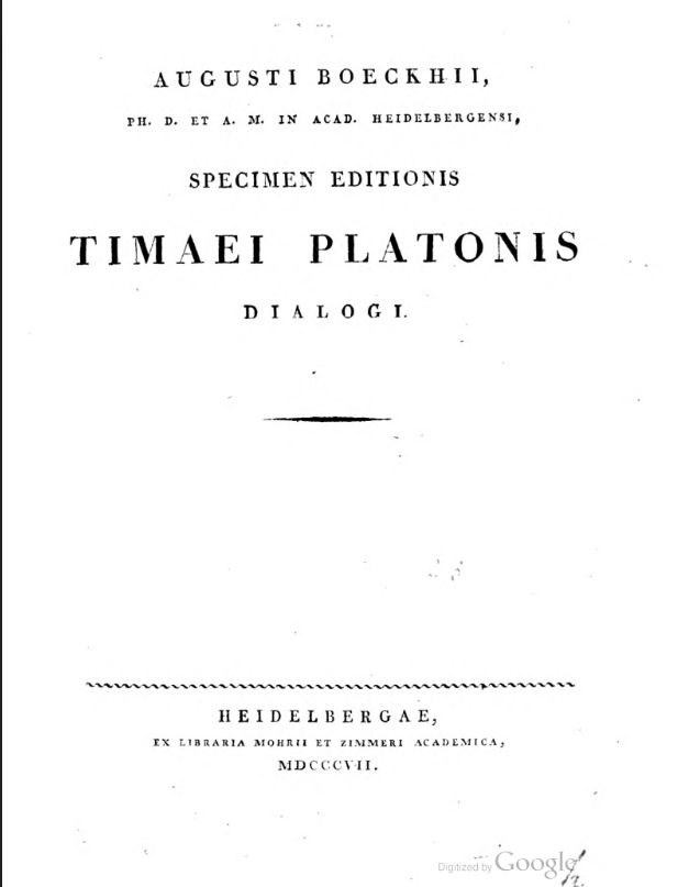 Specimen Editionis Timaei Platonis Dialogi