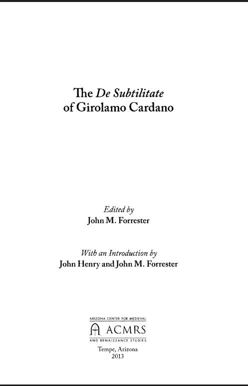 The De Subtilitate of Girolamo Cardano