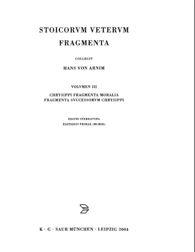 Stoicorum Veterum Fragmenta. Vol. 3: Chrysippi fragmenta moralia. Fragmenta successorum Chrysippi
