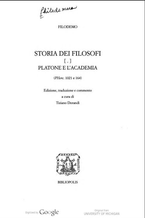 Storia dei filosofi [.] Platone e l’Academia (PHerc 1021 e 164)