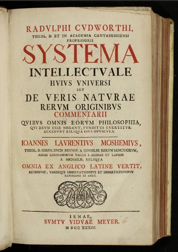 Systema intellectuale huius universi seu de veris naturae rerum originibus commentarii, quibus omnis eorum philosophia, qui Deum esse negant, funditus evertitur accedunt reliqua ejus opuscula
