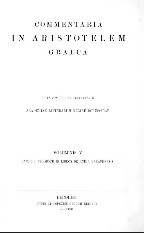 Themistii Analyticorum posteriorum paraphrasis: Themistii In libros Aristotelis De anima paraphrasis
