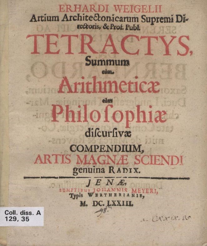 Tetractys summum tum arithmeticae tum philosophiae discursivae compendium, artis mangnae sciendi genuina radix