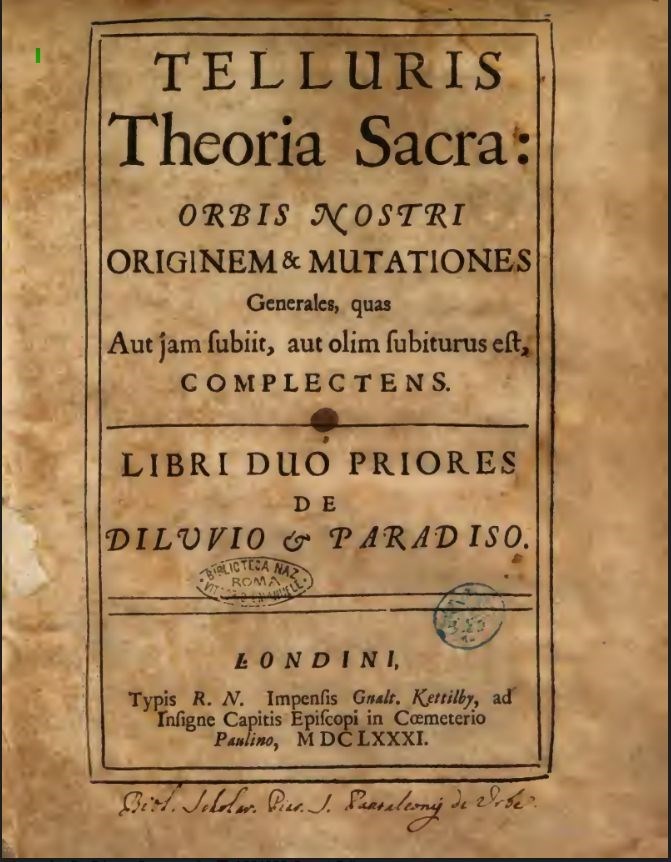 Telluris theoria sacra: orbis nostri originem & mutationes generales, quas aut jam subiit, aut olim subiturus est, complectens. Libri duo priores de diluvio et paradiso