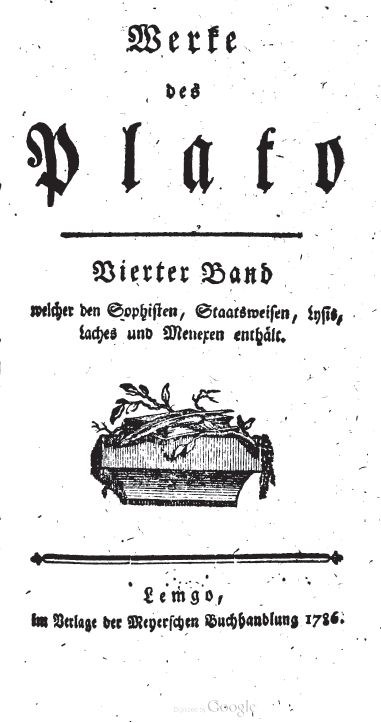Werke des Plato. Band 4: welcher den Sophisten, Staatsweisen, Lysis, Laches und Menexen enthält