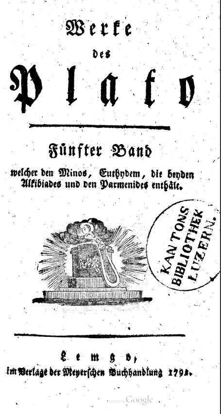 Werke des Plato. Band 5: welcher den Minos, Euthydem, die beyden Alkibiades und den Parmenides enthält