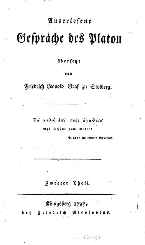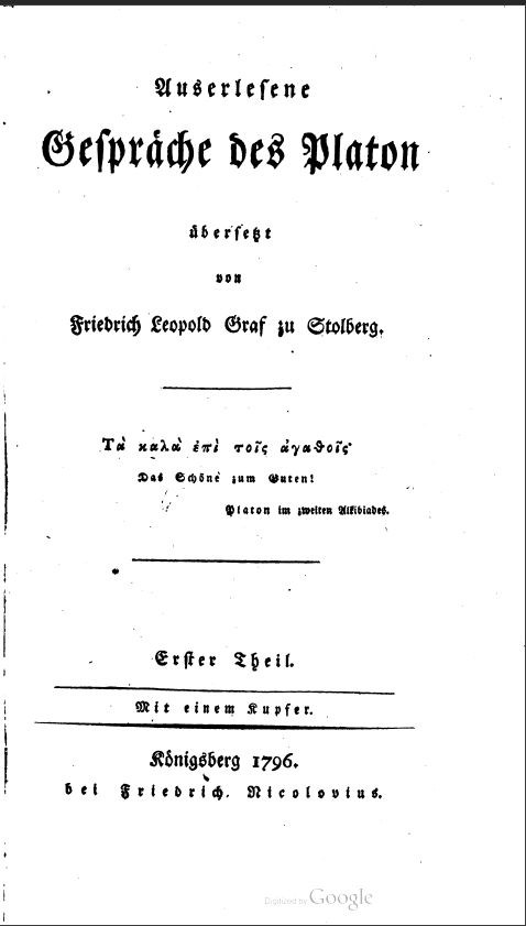 Auserlesene Gespräche des Platon, übersetzt von Friedrich Leopold Graf zu Stolberg, Bd. 1