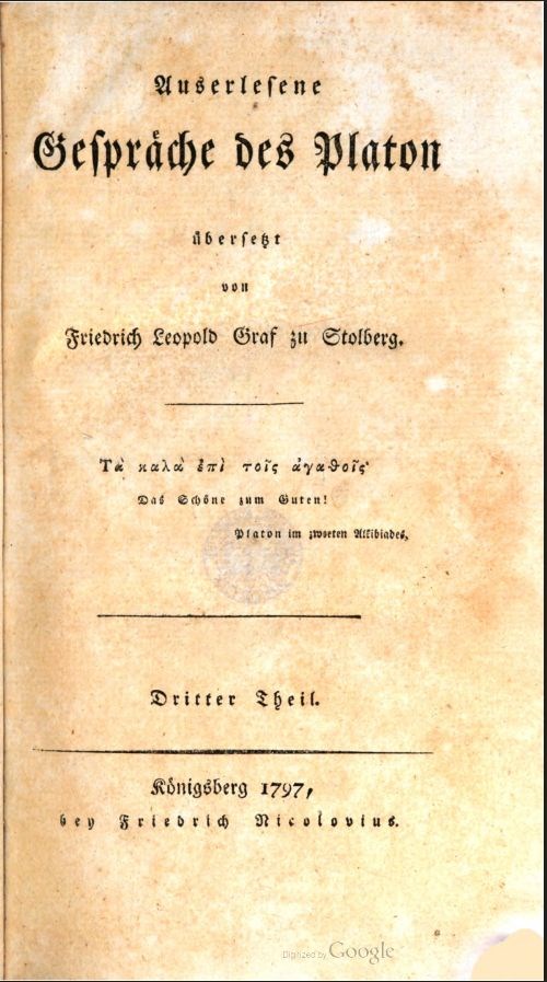 Auserlesene Gespräche des Platon, übersetzt von Friedrich Leopold Graf zu Stolberg, Bd. 3