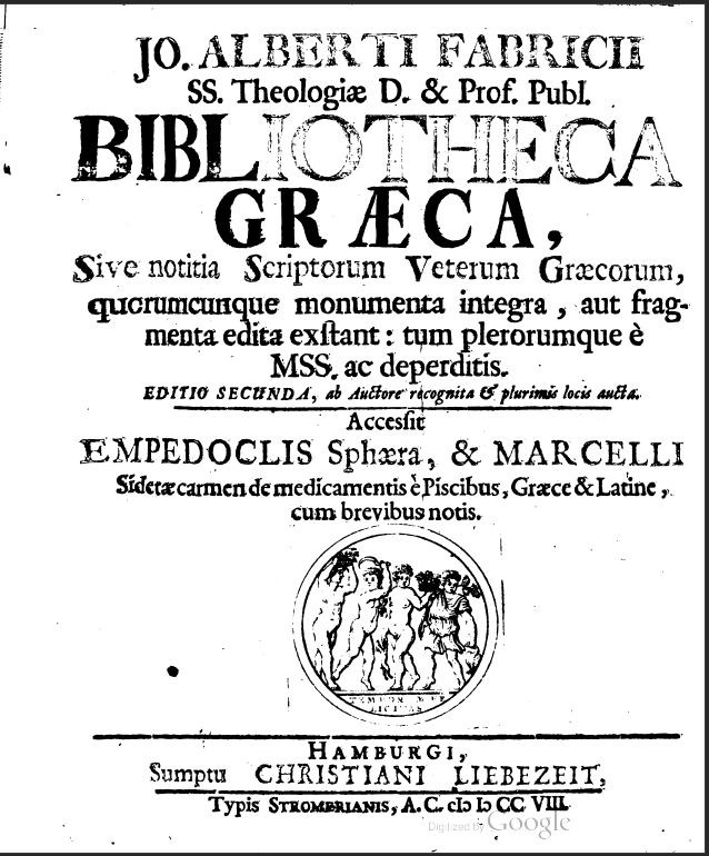 Bibliotheca Græca, Sive notitia Scriptorum Veterum Græcorum, quorumcunque monumenta integra, aut fragmenta edita exstant: tum plerorumque è MSS. ac deperditis