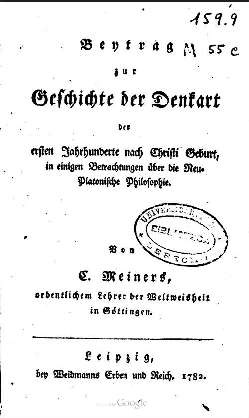 Beytrag zur Geschichte der Denkart der ersten Jahrhunderte nach Christi Geburt, in einigen Betrachtungen über die Neu-Platonische Philosophie