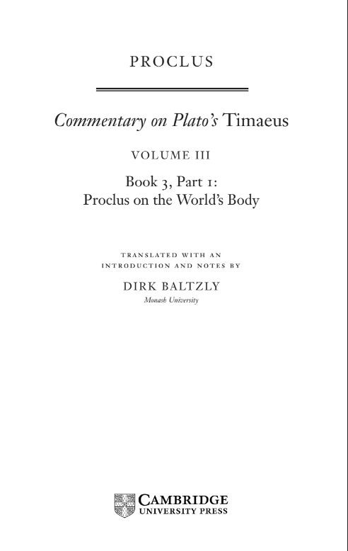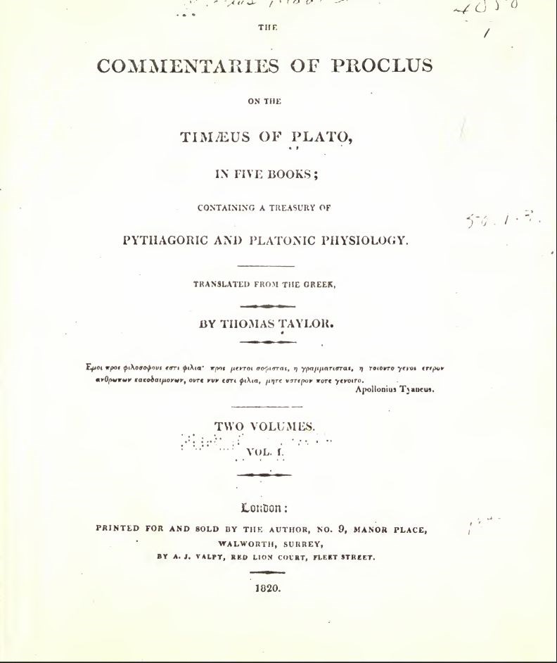 The Commentaries of Proclus on the Timaeus of Plato, in Five Books: Containing a Treasury of Pythagoric and Platonic Physiology